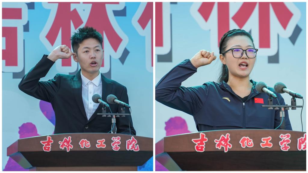 国家一级裁判员、体育教学部教师王栋代表全体裁判员宣誓。第6届中国大学生射箭锦标赛女子团体亚军、生物2201班学生商译丹代表全体运动员宣誓。